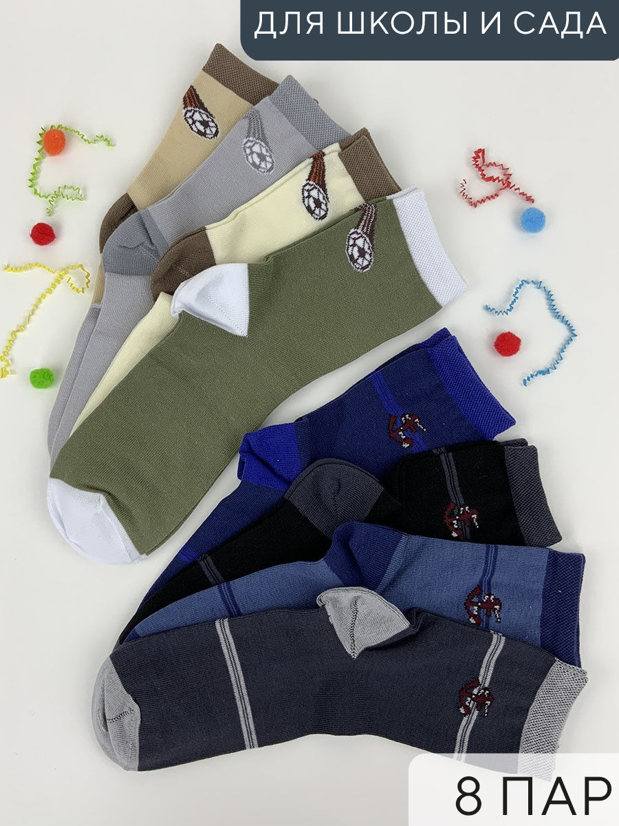 Носки для мальчика школьные набор с принтом 8 пар. Носки демисезонные изготовлены из качественного турецкого хлопка по современным технологиям. Носки детские и для подростков комплект можно дарить в подарок детям, мальчику на 23 Февраля, на день рождения для ребенка, сына. Носки с рисунком прекрасно подойдут для школы, в детский сад, на прогулку, дома, садика и танцев. Прикольные и модные хлопковые носки в представленной цветовой гамме станут отличным дополнением к гардеробу. Добавление небольшого количества полиамида позволяет не опасаться, что мягкие носочки потеряют форму при активном использовании или после стирки. В ассортименте John Jeniford есть носки для девочки в садик, спортивные укороченные для футбола, бега, фитнеса, женские прикольные с надписью, высокие трендовые мужские и короткие следки летние в сетку, стильные цветные и модные молодежные яркие с принтом, черные однотонные и белые, антискользящие для новорожденных малышей.